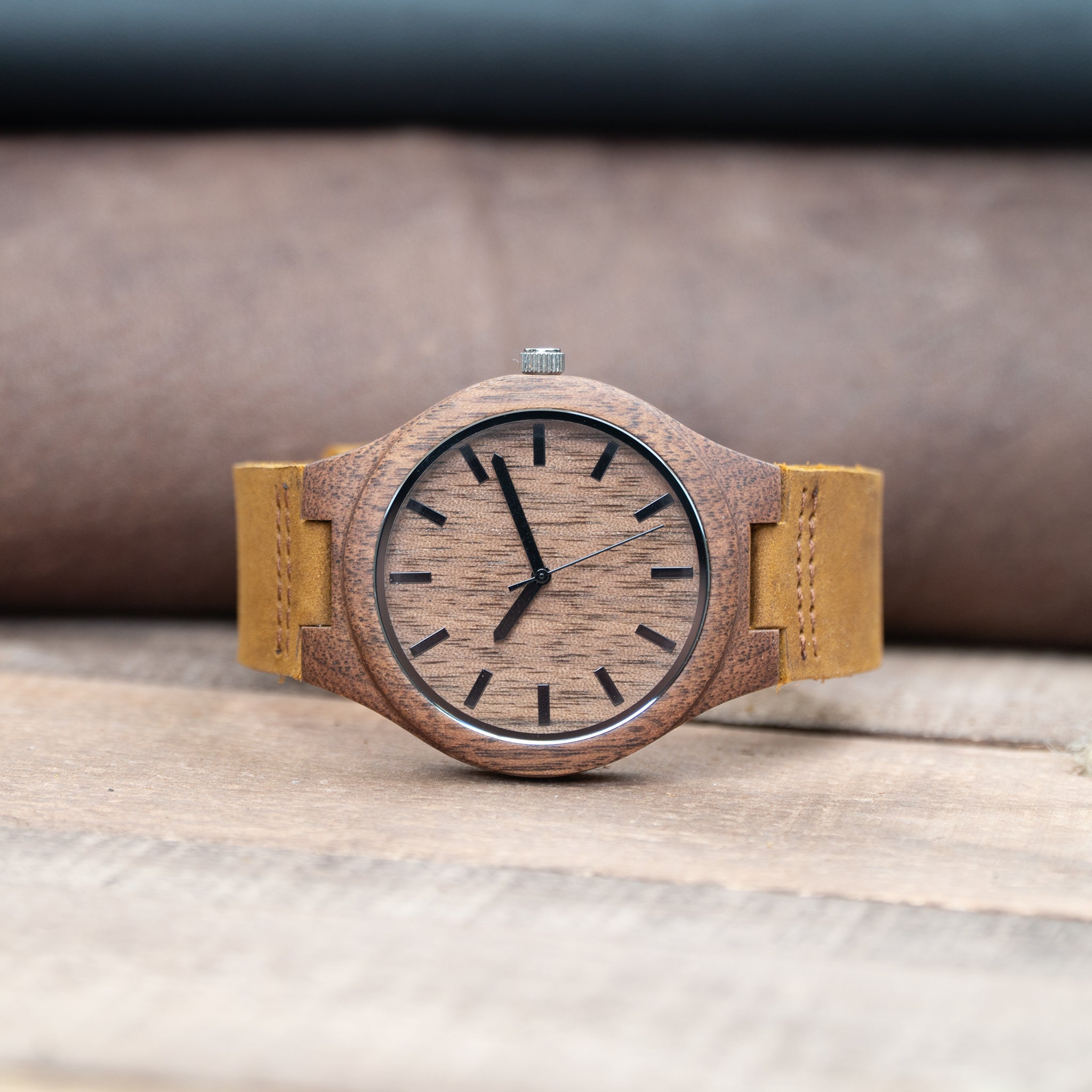 Wooden watch made from natural wood and has a genuine leather band that is soft and comfortable.
